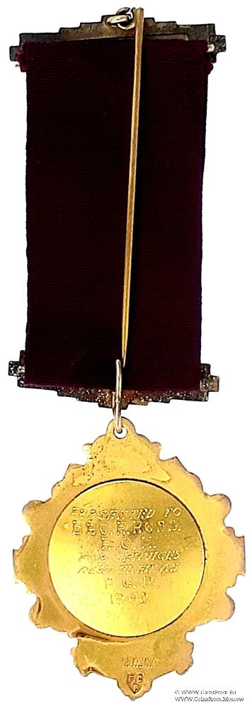 РЕВЕРС: гравировка: Presented to Bro. R.Ross R.O.H. for Services Rendered as P.G.P. 1962. Клейма: FCP якорь, лев, N (1962).