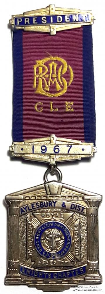 Знак в форме здания (Ложи) с двумя колоннами по бокам. В центре знака изображение креста Ордена заслуг по форме идентичный Ордену Заслуг. Над изображением ордена лента с наименованием района AYLESBURY&DIST. (Aylesbury является городом графства Бакингемшир, Англия). Ниже ордена, лента синей эмали с надписью: KNIGHTS CHAPTER. На реверсе знака гравировка: PRESENTED TO BRO. J.H. BURNS R.O.H. (ROLL OF HONOR – свиток чести) FOR SERVICE RENDERED AS PRESIDENT 1967 – Вручён Брату J.H. BURNS Кавалеру Ордена Свиток Чести за оказанные услуги в качестве Президента 1967.