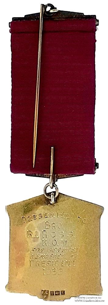 РЕВЕРС: клейма: FCP. Якорь, лев, k (1959). Гравировка: Presented to Bro. R. Ross KOM for Services Rendered as President 1959.