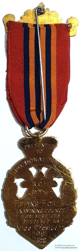 Реверс: гравировка: Presented to Bro. Donald Nunn ROH by the Epping Forest Examining Council for Services Rendered as Vice-President 1981. – Вручён Брату. Donald Nunn кавалеру Ордена Свиток Чести от экспертного Совета района Эппинг-Форест (район Эппинг-Форест в графстве Эссекс, Англия.) за услуги, оказанные в качестве вице-президента 1981. Клейма: Parry. B’Ham.