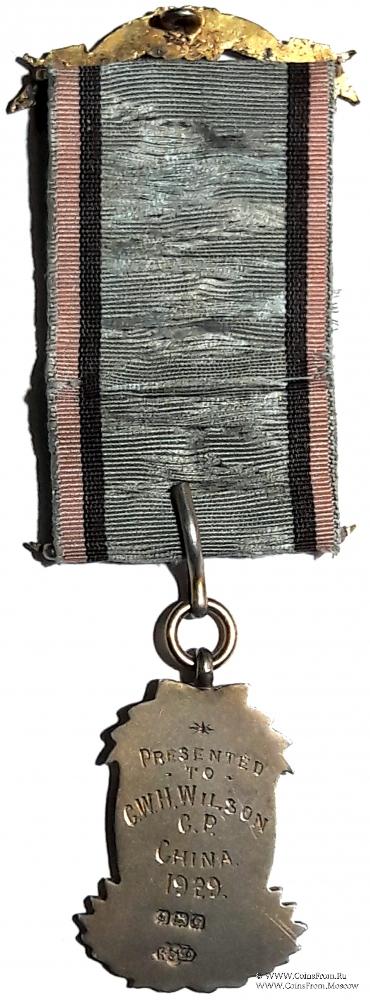 Реверс: гравировка: Presented to C.W.H. Wilson C.P. China. 1929. – Вручён C.W.H. Wilson. Китай. 1929 г. Клейма: HS ltd якорь, лев, С. Выпуск: Бирмингем. Год выпуска: 1927 г.