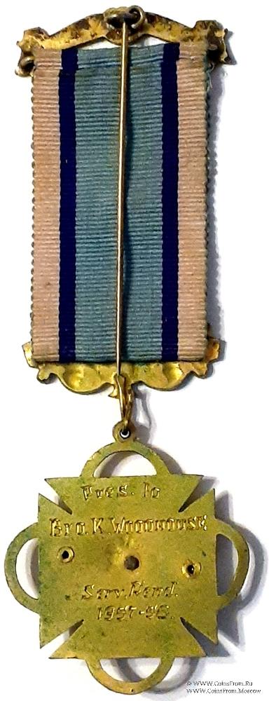 Реверс: гравировка: Pres. To Bro. K. Woodhouse Serv. Rend. 1957-58 (Present To Bro. R. Woodhouse Service Rendered 1957-58) – Вручён Брату K. Woodhouse за оказанные услуги в 1957-58 годах. Клейм нет. Выпуск: Бирмингем. Год выпуска: 1958 г.