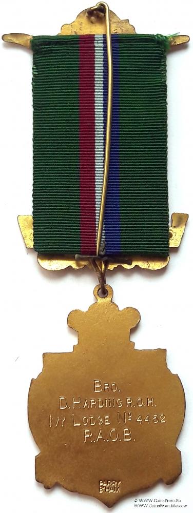 Реверс: гравировка: Bro. D. HARDING R.O.H. Ivy Lodge № 4452 RAOB - брату D. HARDING кавалеру ордена Свиток Чести Ложа Ivy № 4452 RAOB. Клейма: PARRYB’HAM. Выпуск: Бирмингем. Год выпуска: 1969 г.