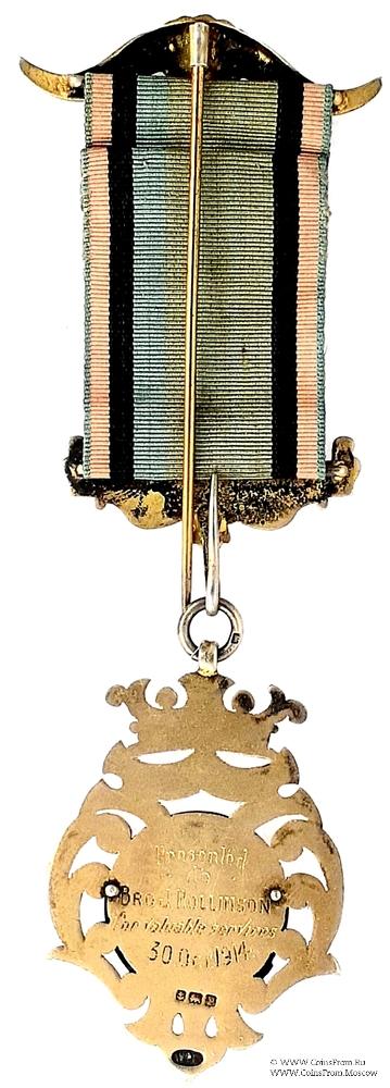 РЕВЕРС: клейма: WME, якорь, лев, Р (1914). Гравировка: Presented to Bro. J. Rollinson for Valuable Services 30 Oct. 1914.