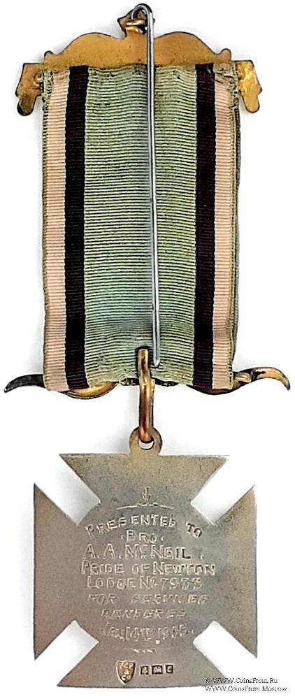 РЕВЕРС: клейма: FCP&Co, якорь, лев, e (1954). Гравировка: Presented to Bro. A.A. McNell Pride of Newton Lodge № 7933 for Services Rendered. Jan. 14. 1955
