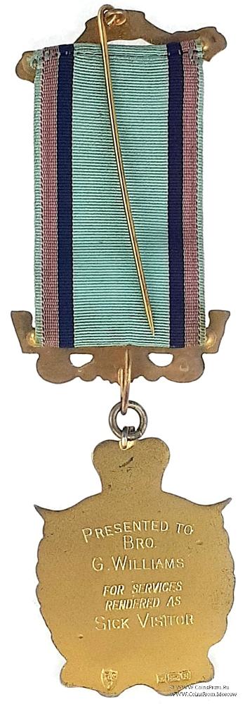 РЕВЕРС: Presented to Bro. G. Williams for Services Rendered as Sick Victor. Клейма: FCP, якорь, лев, B (1976).