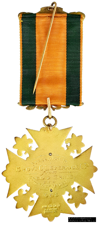 РЕВЕРС: гравировка: Presented to Bro. A.G. Leveridge CP from Fred & Ernie as a Mark Respect. Клейма: LSL, лев, голова, с (1958). L.Simpson London LTD. Выпуск Лондон, 1958 год.