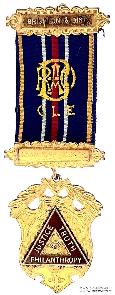 КОЛОДКИ/МЕДАЛЬОН: верхняя колодка в виде прямоугольника на фоне стилизованного орнамента с наименованием провинции Brighton&Dist. Нижняя колодка в виде прямоугольника на фоне стилизованного орнамента с надписью: Examining Council.