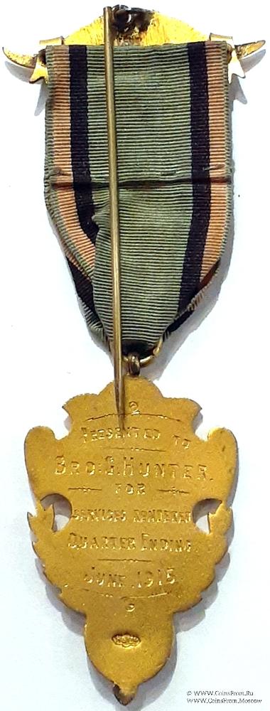 РЕВЕРС: гравировка: Presented to Bro G. Hunter for Services Rendered Quarter Ending June 1915 - Представлен Брат G. Hunter за оказанные услуги в квартал, закончившийся в июне 1915 г. Клеймо: HS LTD .
