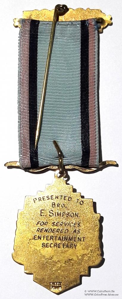 Знак жёлтого цвета в форме «лучистого» квадрата с рельефным изображением фигуры буйвола с боков обрамлён венком. Сверху аббревиатура Ордена RAOB на красной эмали. Снизу на лентах красной эмали надпись на английском языке SERVICES RENDERED - оказанные услуги. Гравировка на реверсе знака: PRESENTED TP BRO. E. SIMPSON FOR SERVICES RENDERED AS ENTERTAINMENT SECRETARY – преподнесён Брату E. SIMPSON за услуги, предоставляемые в качестве секретаря.