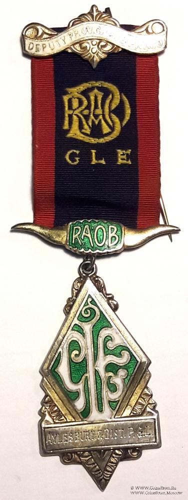 Знак в виде ромба с бело-зелёной вязью. Внизу ромб украшен орнаментом и пересекается лентой с наименованием AYLESBURY&DIST P.G.L. –Провинциальная Великая Ложа AYLESBURY и района. Гравировка на реверсе знака: PRESENTED TO BRO. H.L. ALEXANDER R.O.H. FOR CERVICES RENDERED AS D.P. P.G.L. 1958 – вручён Брату H.L. ALEXANDER (ROLL OF HONOR – свиток чести) Кавалеру Ордена Свиток Чести за оказанные услуги в качестве заместителя провинциального Великого ПРИМО 1958. (Aylesbury является городом графства Бакингемшир, Англия).