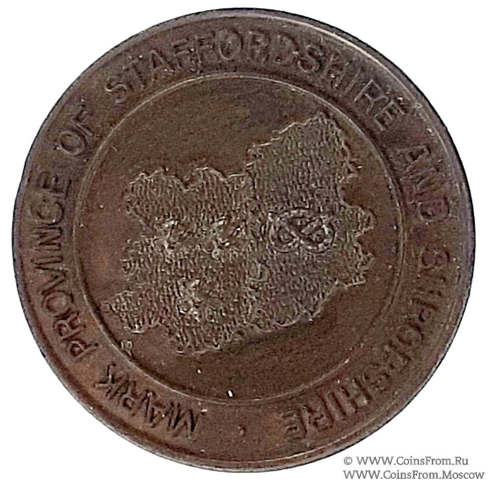 РЕВЕРС: двойной круг с наименованием провинций – Mark Province of Staffordshire and Shropshire. В центре изображение очертания границ и символов провинций.
