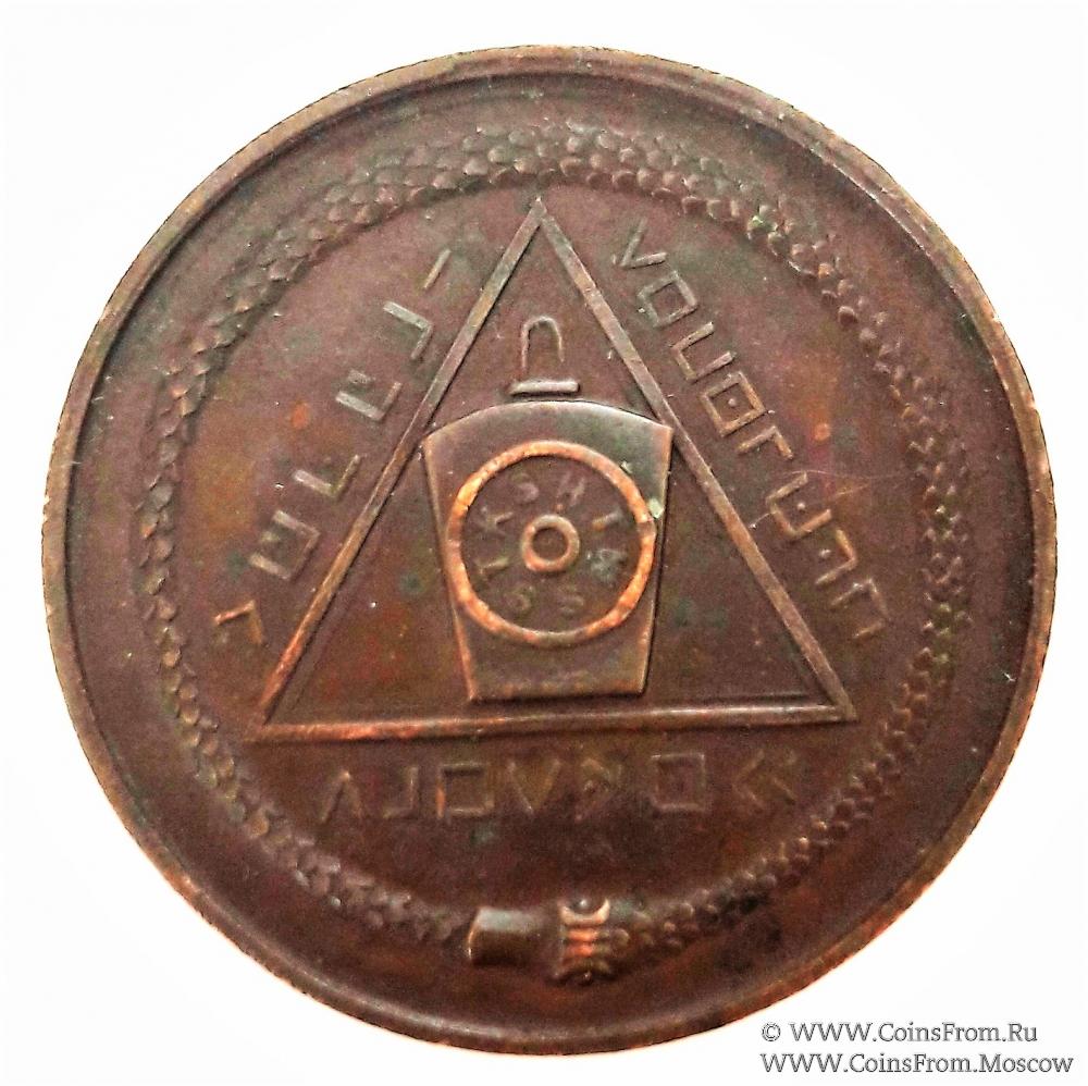 Жетон круглой формы с чётко выраженным буртиком от гурта. Диаметр 33 мм. На аверсе в центре изображение подвески в форме замкового камня с английскими буквами HTWS-STKS (HIRAM, TYRIAN WIDOW*S SON, SENDETH TO SOLOMON) – Хирам, сын вдовы Тириана, направленный к царю Соломону. Замковый камень помещён в равносторонний треугольник с символами по сторонам. Всё это помещено в круг, образованный чешуйчатым (змееподобным) шнуром, утолщённым в верхней части. В низу более тонкие концы шнура заканчиваются рукопожатием.