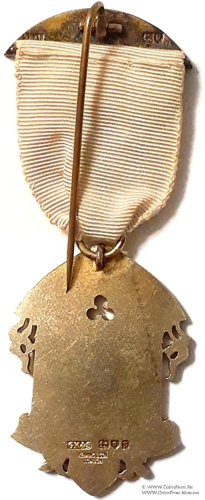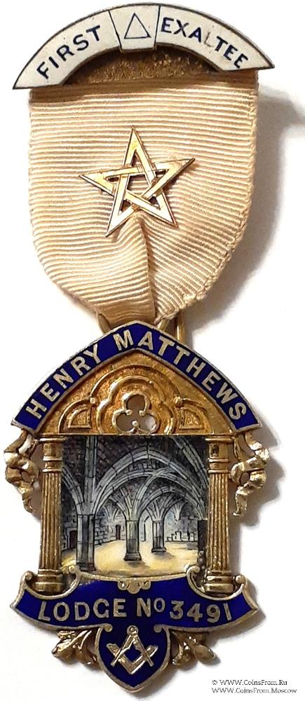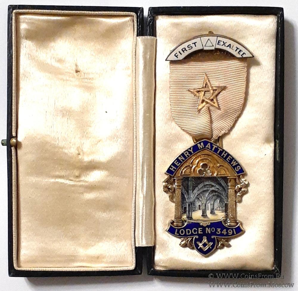 АВЕРС: в форме здания с двумя символическими колоннами. Крыша и пол здания отображаются лентой синей эмали с наименованием и номером Ложи - Henry Matthews Lodge № 3491. В центре рисунок по эмали, изображающий аркаду.