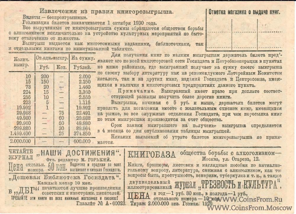 Лотерейные билеты РСФСР и СССР 1922-1991 гг. Всероссийский выпуск.