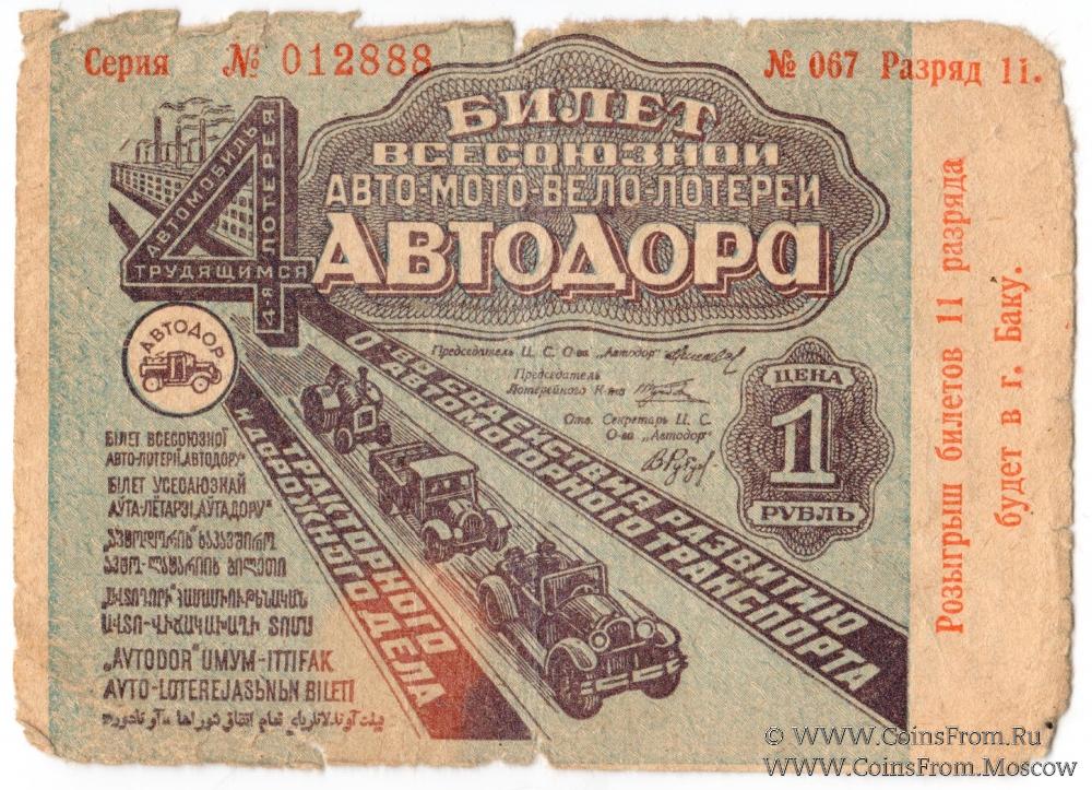 Лотерейные билеты РСФСР и СССР 1922-1991 гг. Всероссийский выпуск.