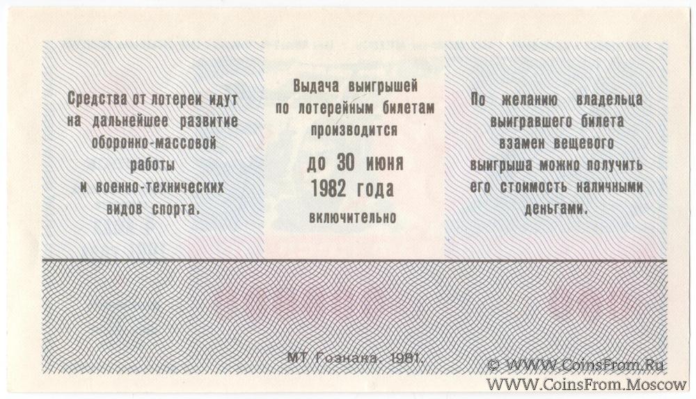 Билет. Выпуск 1. Типографская надпечатка красного цвета по диагонали "ОБРАЗЕЦ". Лотерея.