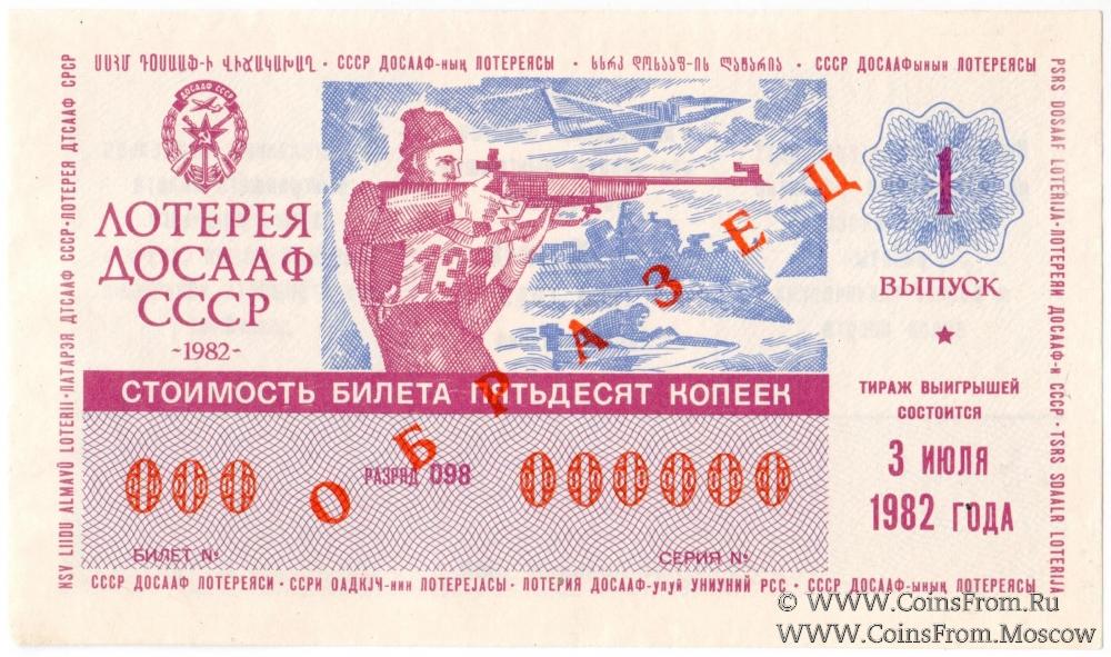 Билет. Выпуск 1. Типографская надпечатка красного цвета по диагонали "ОБРАЗЕЦ". Лотерея.