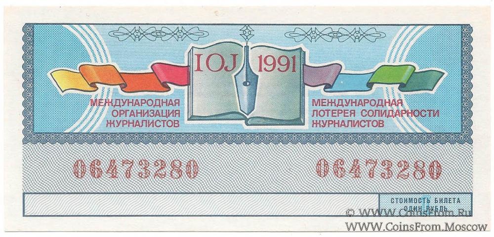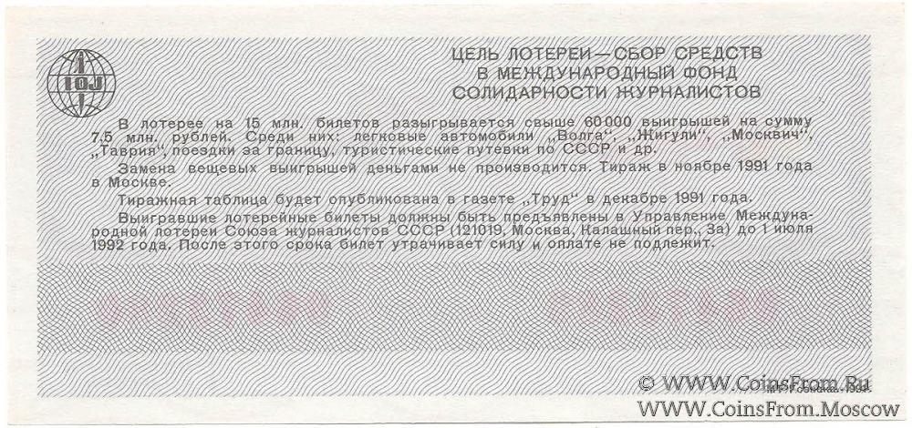 Билет. Водяной знак. Тираж в г. Москве. Международная лотерея солидарности журналистов.