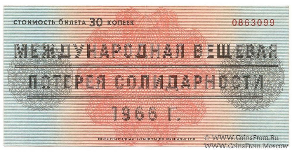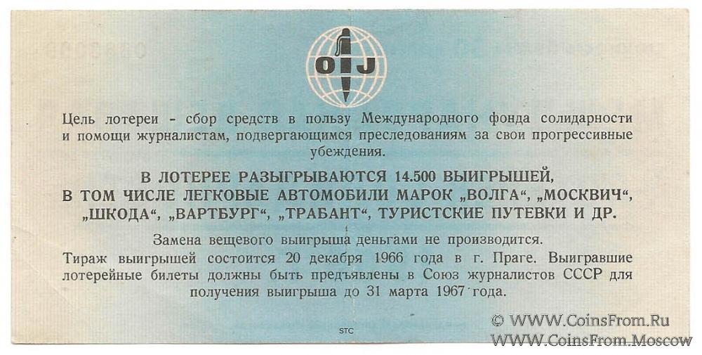 Билет. Водяной знак. Тираж в г. Праге (ЧССР). Международная вещевая лотерея солидарности.
