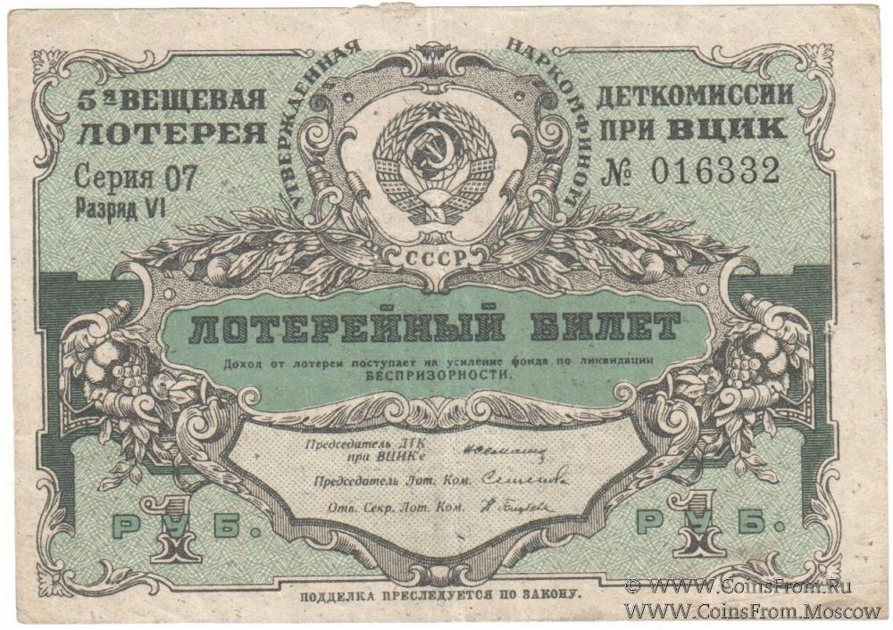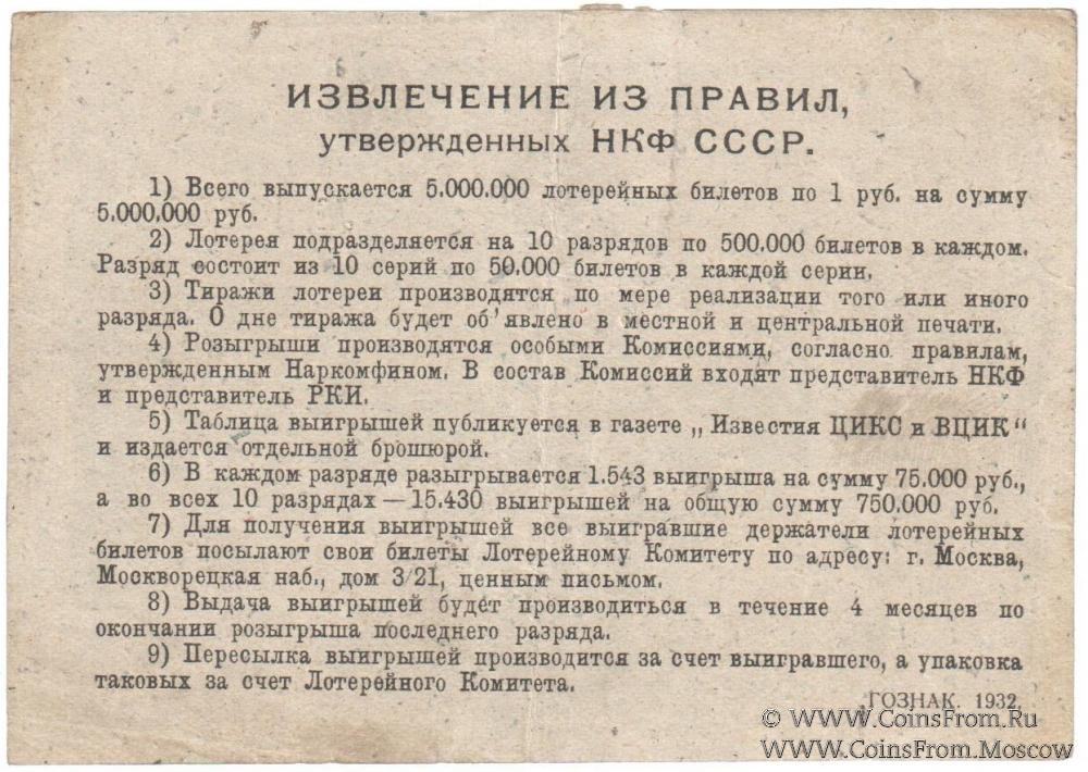 Лотерейный билет. Серии . Водяной знак. 5-я Вещевая лотерея 1932 г.