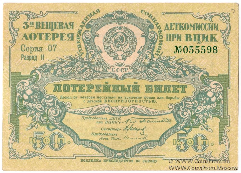 Лотерейные билеты РСФСР и СССР 1922-1991 гг. Всероссийский выпуск.