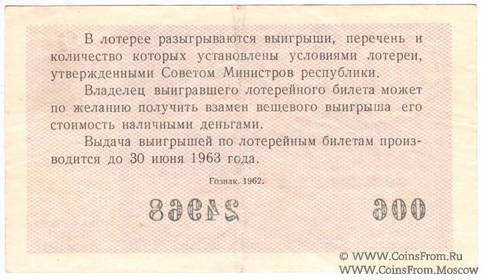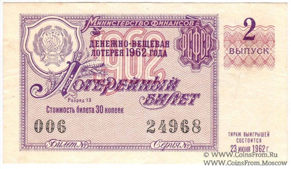 Лотерейный билет. Выпуск 2. Денежно-вещевая лотерея 1962 г.