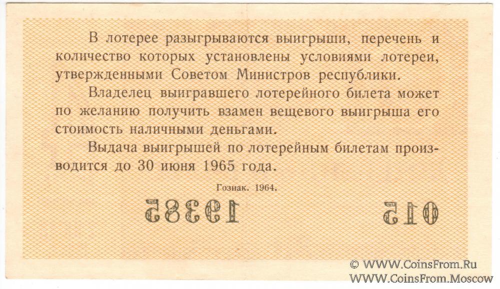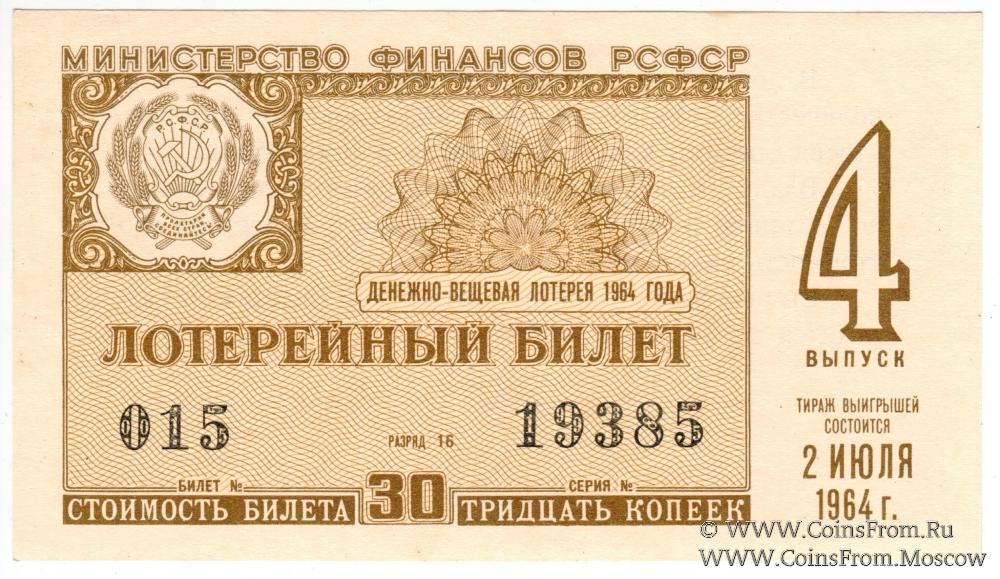 Лотерейный билет. Выпуск 4. Денежно-вещевая лотерея 1964 г.
