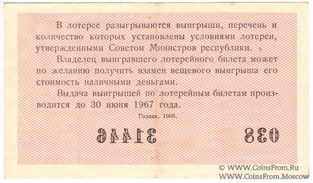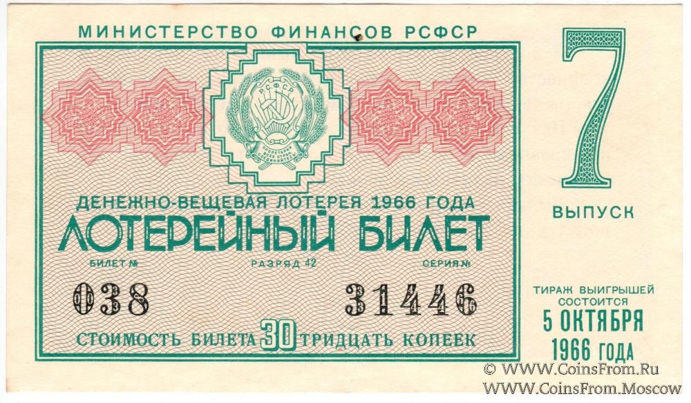Лотерейный билет. Выпуск 7. Денежно-вещевая лотерея 1966 г.