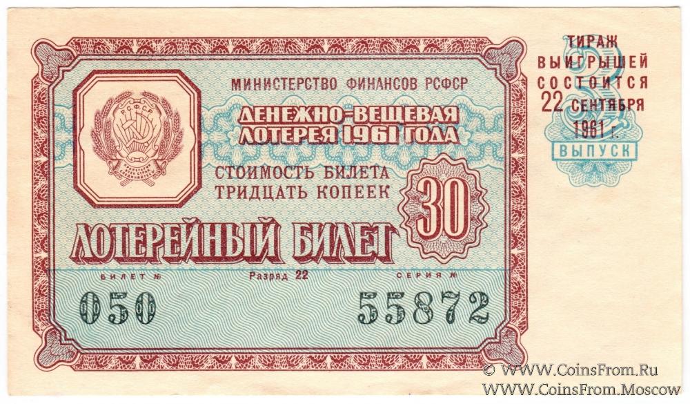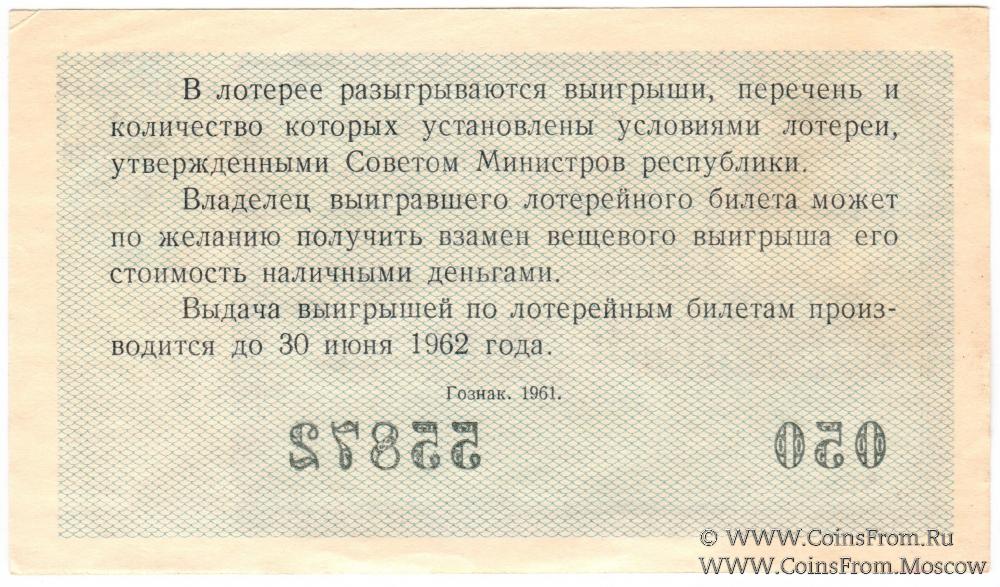 Лотерейный билет. Выпуск 3. Денежно-вещевая лотерея 1961 г.