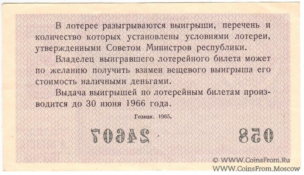 Лотерейный билет. Выпуск 5. Денежно-вещевая лотерея 1965 г.