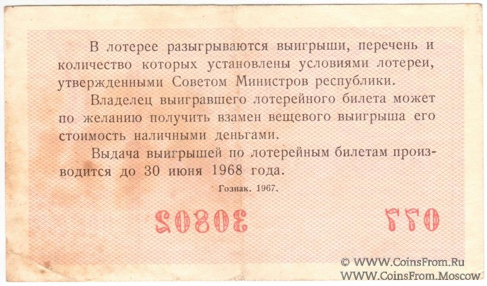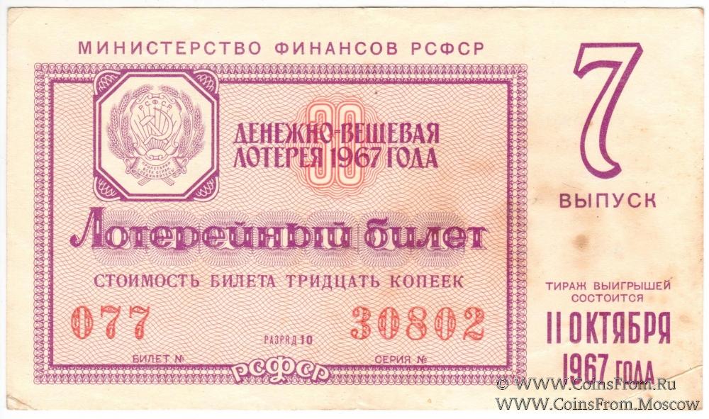 Лотерейный билет. Выпуск 7. Денежно-вещевая лотерея 1967 г.