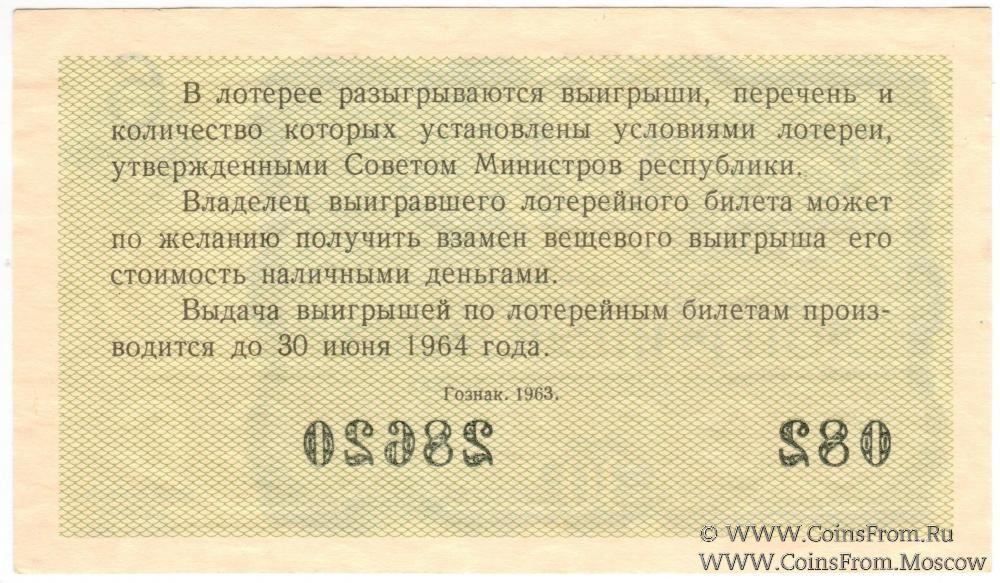 Лотерейный билет. Выпуск 6. Денежно-вещевая лотерея 1963 г.