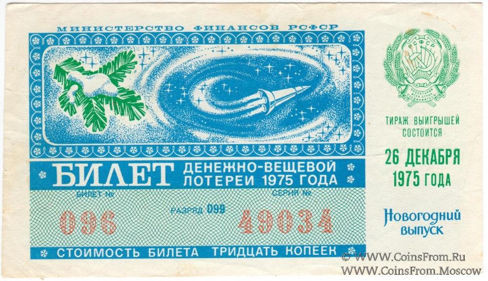Лотерейный билет. Новогодний выпуск. Денежно-вещевая лотерея 1975 г.
