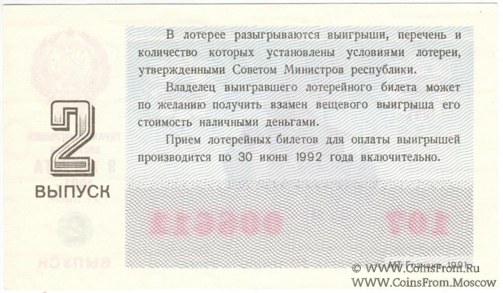 Билет. Выпуск 2. Тираж в г. Омске. Денежно-вещевая лотерея 1991 г.