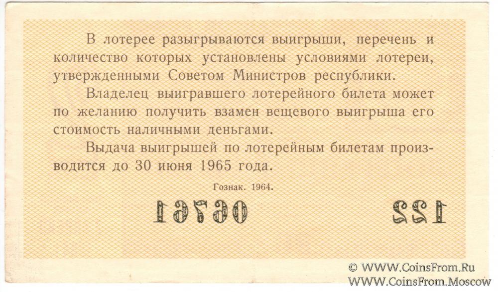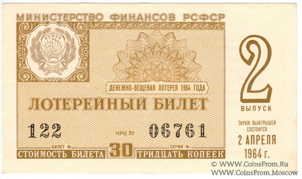 Лотерейный билет. Выпуск 2. Денежно-вещевая лотерея 1964 г.