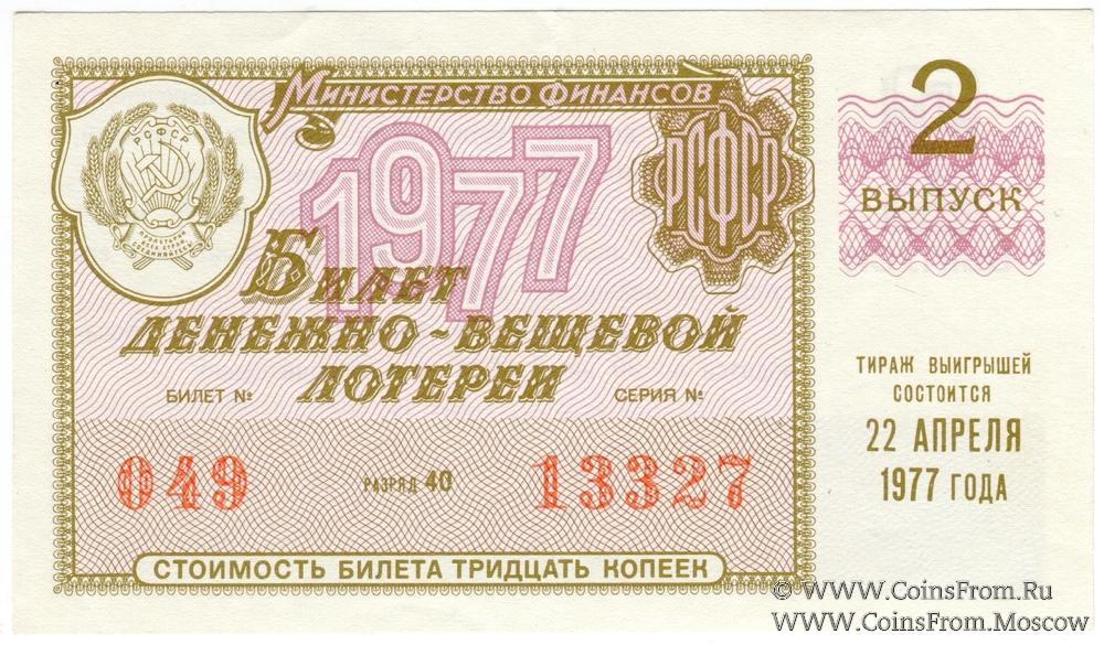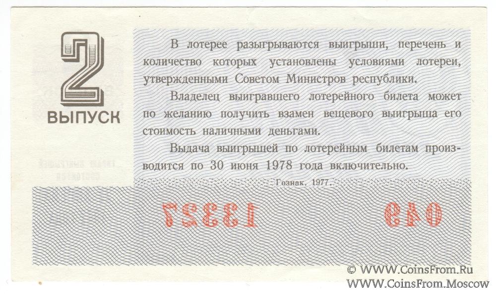 Билет. Выпуск 2. Денежно-вещевая лотерея 1977 г.