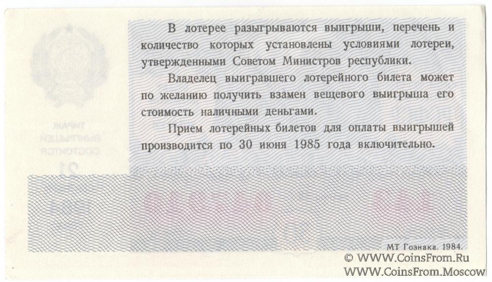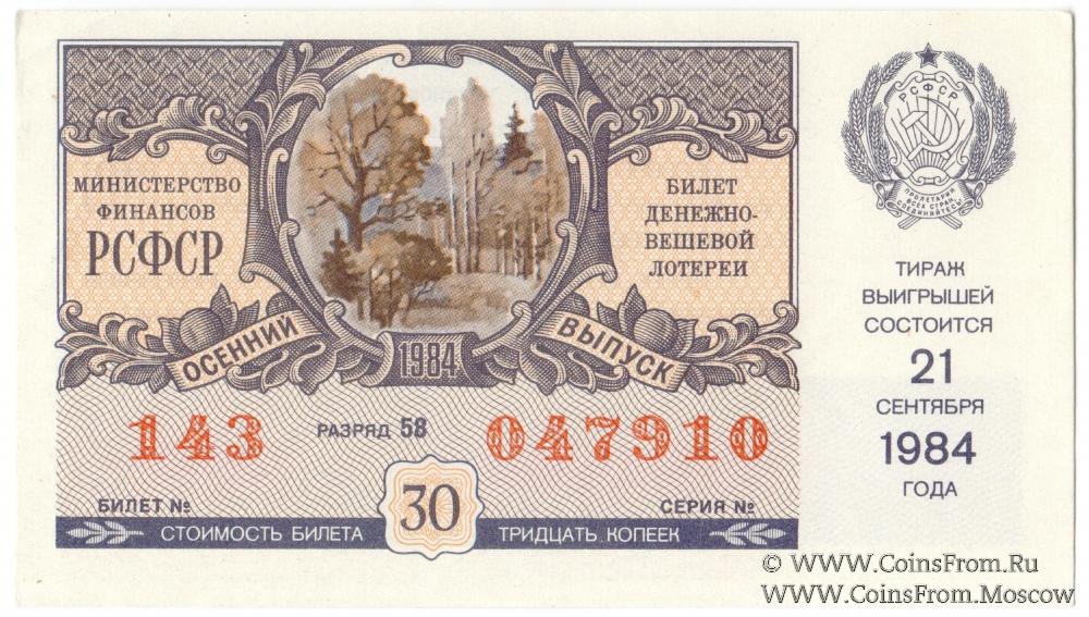 Билет. Осенний выпуск. Денежно-вещевая лотерея 1984 г.
