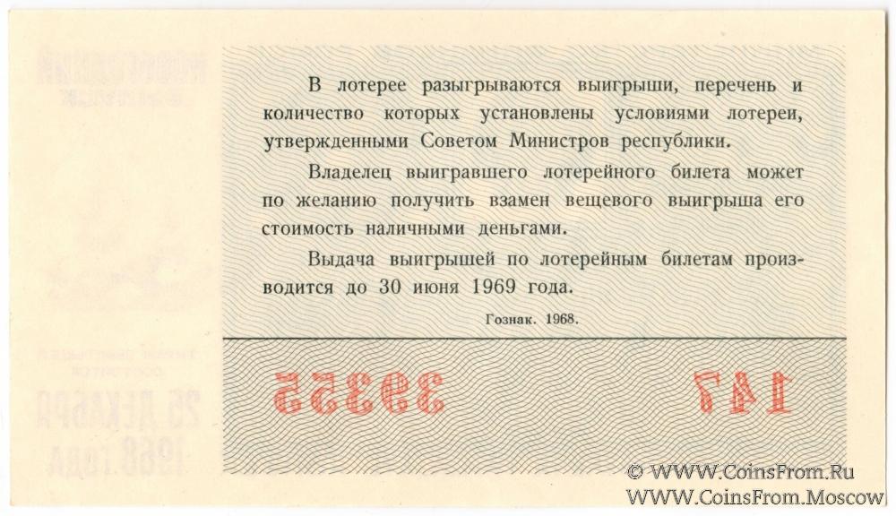 Билет. Новогодний выпуск. Денежно-вещевая лотерея 1968 г.