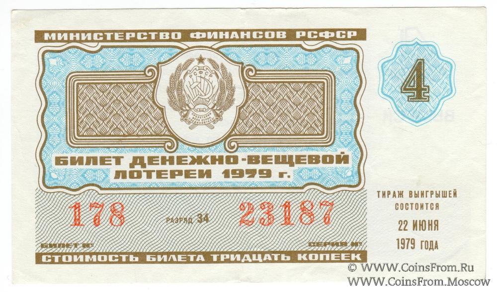 Билет. Выпуск 4. Денежно-вещевая лотерея 1979 г.