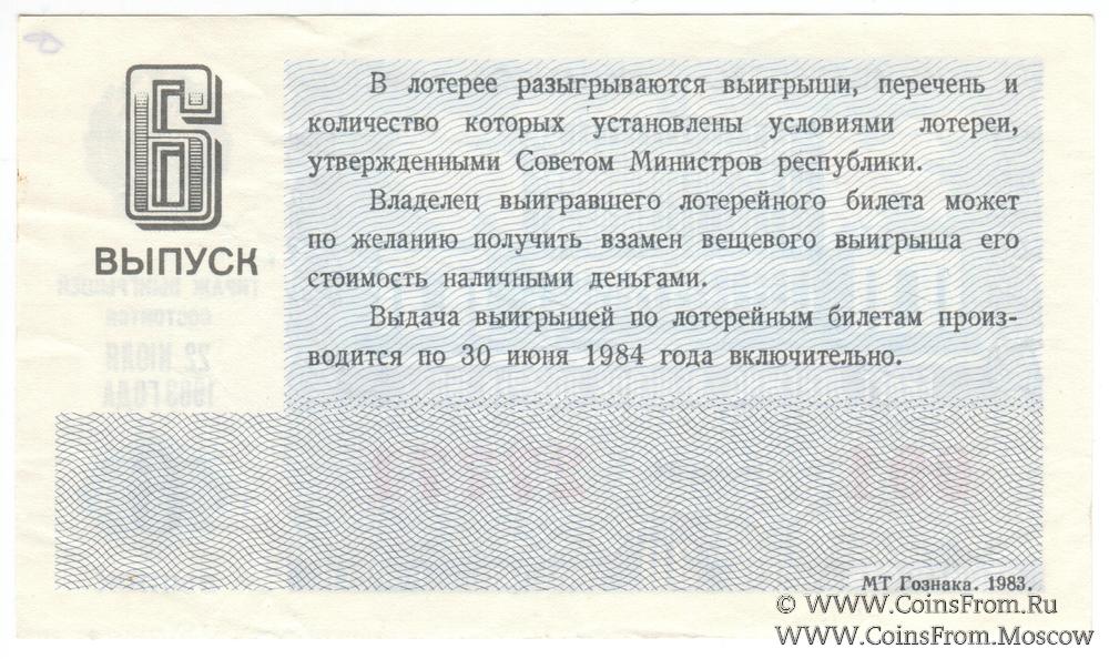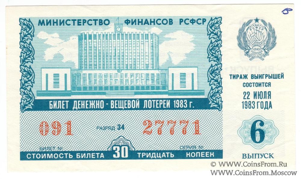Билет. Выпуск 6. Денежно-вещевая лотерея 1983 г.