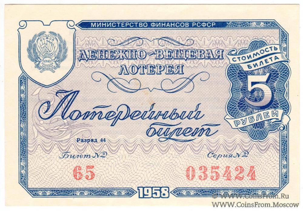 Лотерейный билет. Денежно-вещевая лотерея 1958 г.