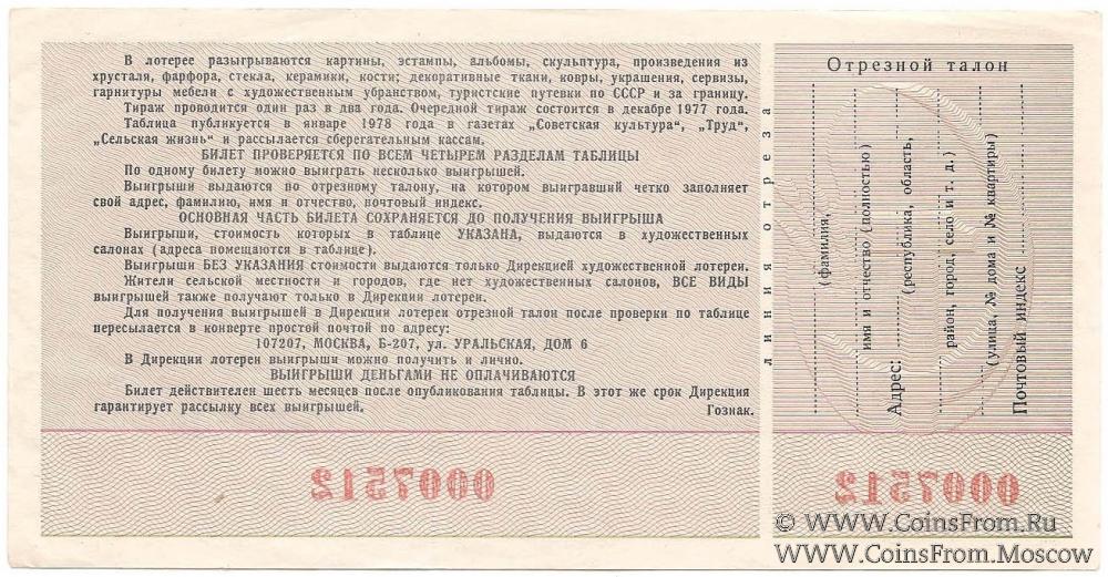 Билет. Выпуск 7. Водяной знак. Всесоюзная художественная лотерея.