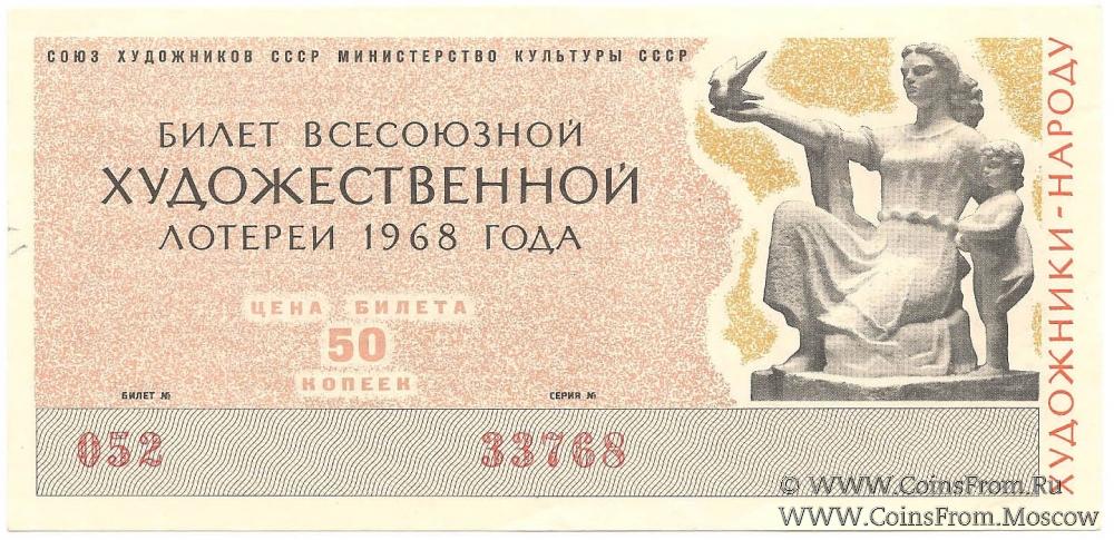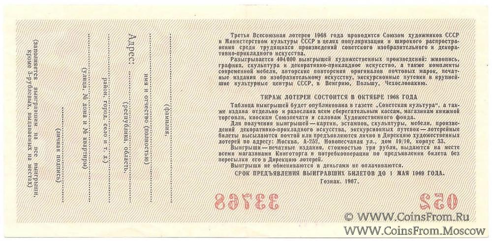Билет. Водяной знак. 3-я Всесоюзная художественная лотерея.