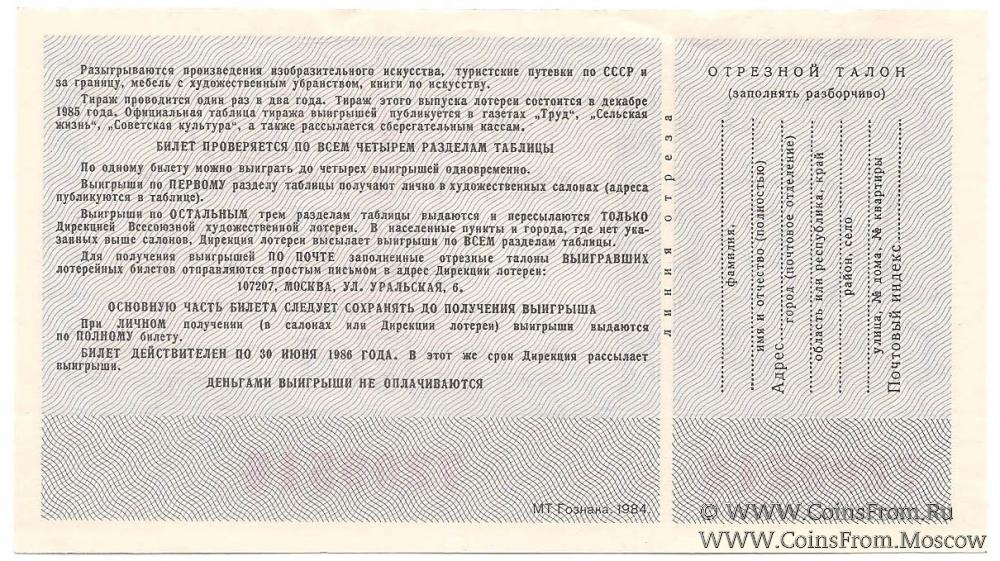 Билет. Выпуск 11. Водяной знак. Всесоюзная художественная лотерея.
