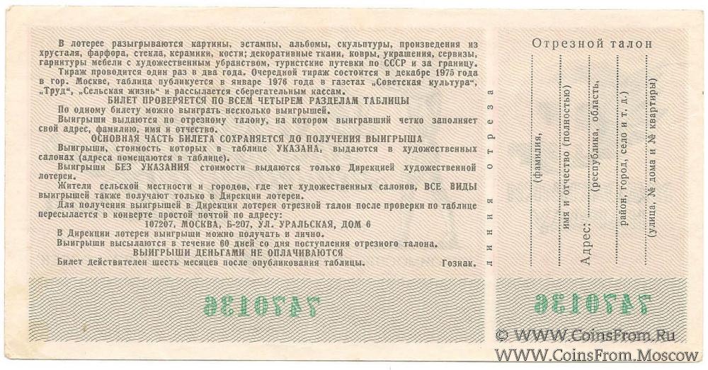 Билет. Выпуск 6. Водяной знак. Всесоюзная художественная лотерея.