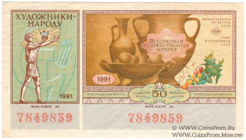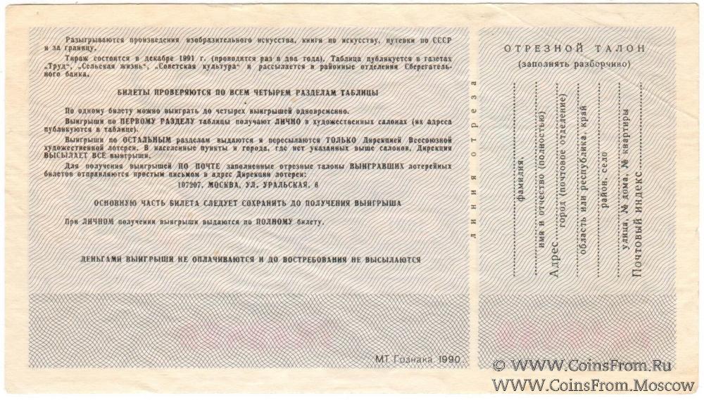 Лотерейный билет. Водяной знак. Размер ~150х84. Всесоюзная художественная лотерея.