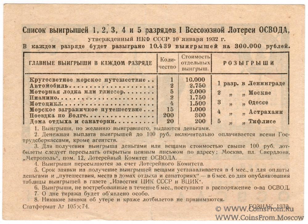 Лотерейный билет. Разряд 4 - Астрахань. 1-я Всесоюзная лотерея.