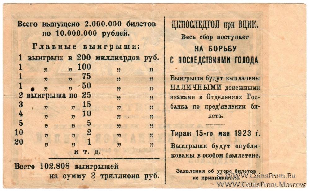 Выигрышный билет 1923 г.
