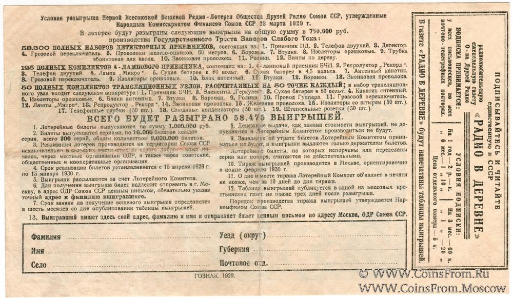 Лотерейные билеты РСФСР и СССР 1922-1991 гг. Всероссийский выпуск.